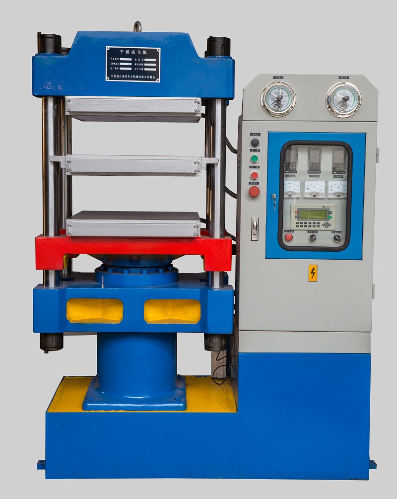 平板硫化機(25噸、30噸),本機適用于壓制各種模壓制品,如壓橡膠和塑料,也適用于薄片制品。本機 床為四柱式整體結(jié)構(gòu),壓制型式為下(向上)壓式,分主機,油箱和電控箱三部分。主機裝有柱 塞,油缸,固定平板,活動平板等部件。油箱有油泵,管道,閥等部件。油泵有電動機帶動,電控箱裝有按鈕開關,磁力啟動器,計時報警器,制動控溫儀,過載保護器等。當電動機過載能自動切斷電源,電加熱由自動控溫儀分三路控溫,能在20-200度...